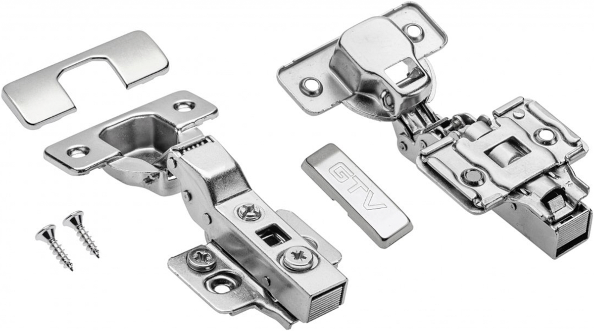 GTV / ECHC Clip-on závěs polonaložený 102°, s tlumením a excentrem, na vrut, nikl