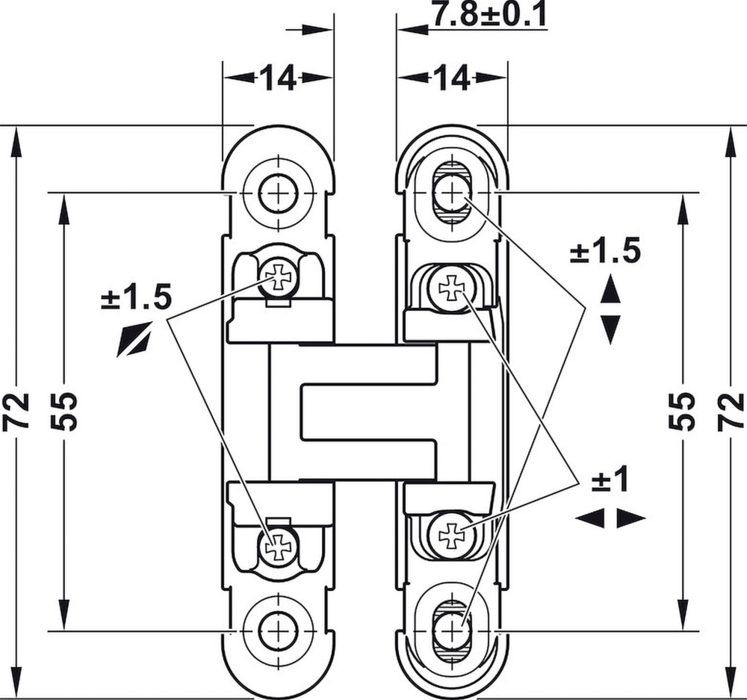 Häfele 341.24.435 / Závěs 3D pro skrytou montáž, tloušťka dřeva 18 mm a více, matný chrom a šedá krytka
