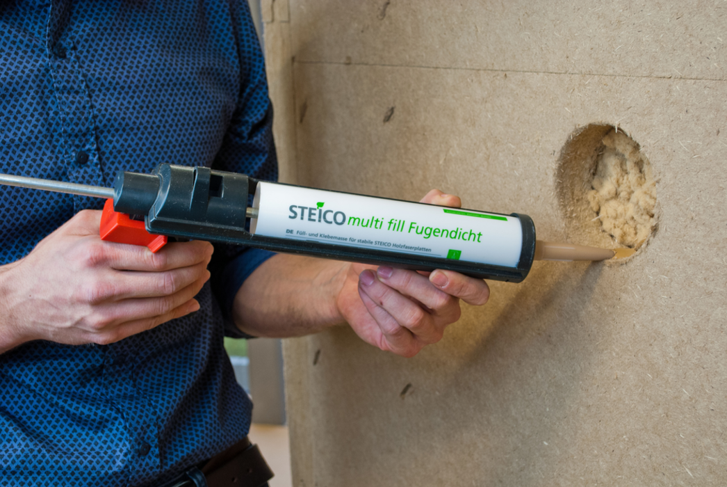 - velmi dobře drží na mnoha podkladech (zejména také na vlhkých), může být použit na těsnění spár izolace u VKZS i bez použití STEICOmulti primer