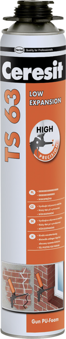 Ceresit TS 63 je jednosložková nízkoexpanzní pistolová polyuretanová pěna vytvrzující vzdušnou vlhkostí.