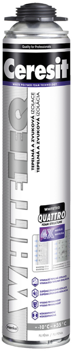 Jednosložková pistolová pěna Ceresit WhiteTeq je nová generace bílé polymerní pěny na bázi purifikovaných a koncentrovaných složek.