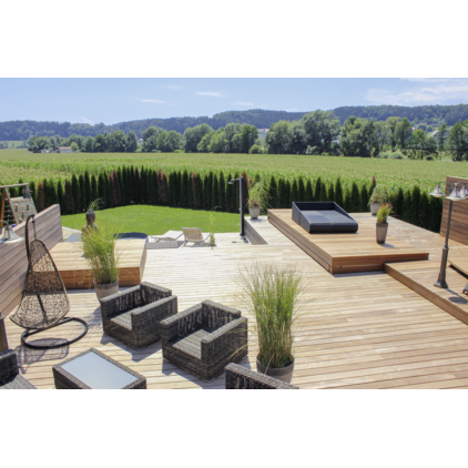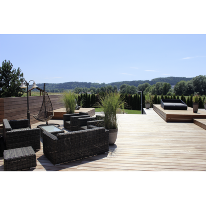 Velmi odolné a mechanicky stabilní. S vlastnostmi, jakými se vyznačuje Ipe z Jižní Ameriky je výborným materiálem pro terasy. Roste až do výšky 30 metrů a asi do výšky 20 metrů je obvykle bez větví. Jádrové dřevo je v čerstvém stavu světle hnědé až světle žlutozelené a později ztmavne do tmavě hnědé až olivové. Barvy jednotlivých prken se liší a vytváří pestrý obraz. Vysoká hustota a jemná textura vytváří celistvý dojem terasy.