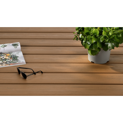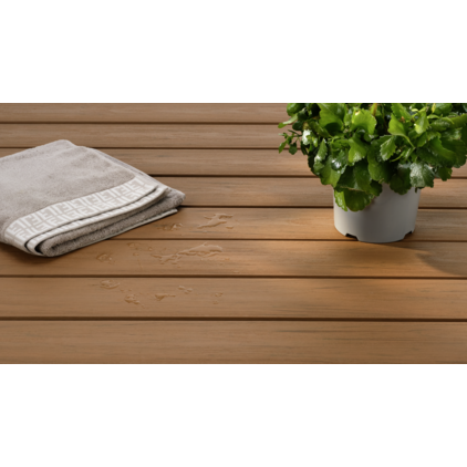 Atraktivní vzhled dřeva zaujme svou vynikající barevnou stálostí a je odolný proti vyblednutí i v nejnáročnějších prostředích, jako jsou veřejné bazény, venkovní grily a vysokohorská místa. Tento kompozitní materiál je kompletně bez ligninu (molekula dřeva, která způsobuje šednutí). Chůze na boso je po této terase příjemná, protože se u těchto terasových prken netvoří žádné třísky a ani praskliny. Údržba terasy je minimální.