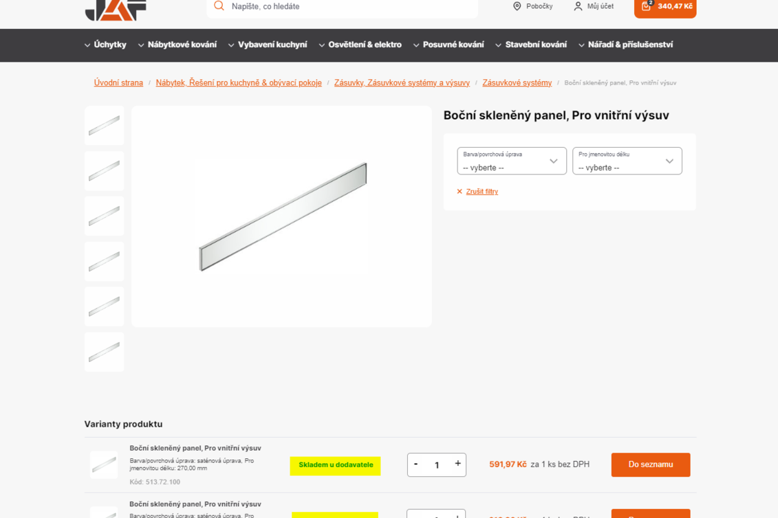 Portál je napojen na skladové zásoby společnosti Häfele. Informace o stavu skladu jsou průběžně aktualizovány, mohou se ovšem v reálném čase lišit. Zákaznický servis JAF HOLZ vám rád skladové zásoby dodatečně ověří i včetně orientační doby dodání.