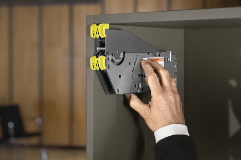AVENTOS top nabízí dvě metody instalace zdvihacího mechanismu: buď pomocí eurošroubů, nebo montáží přes vruty s distančními prvky pro přesné určení polohy. Instalace zdvihacího mechanismu je rychlá, jednoduchá a přesná - aniž by bylo nutné provádět složité výpočty, díky pevným montážním bodům. Přední nastavení zdvihacího mechanismu, spolu s integrovaným tlumením BLUMOTION a omezením úhlu otevření, je také snadné a ulehčuje proces instalace.