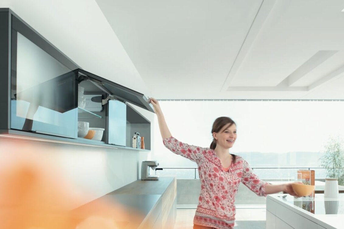 S omezovači úhlu otevření na 100° nebo 75° se zmenší potřebný prostor nahoře.