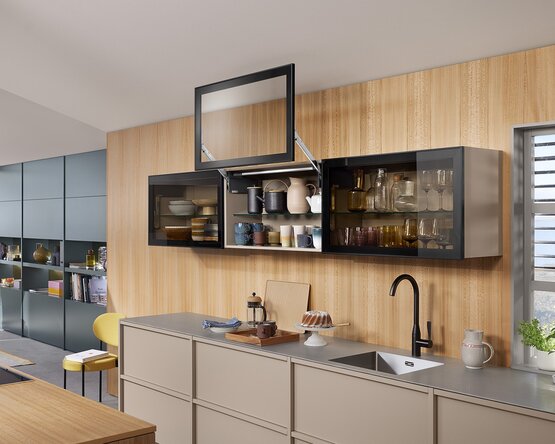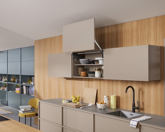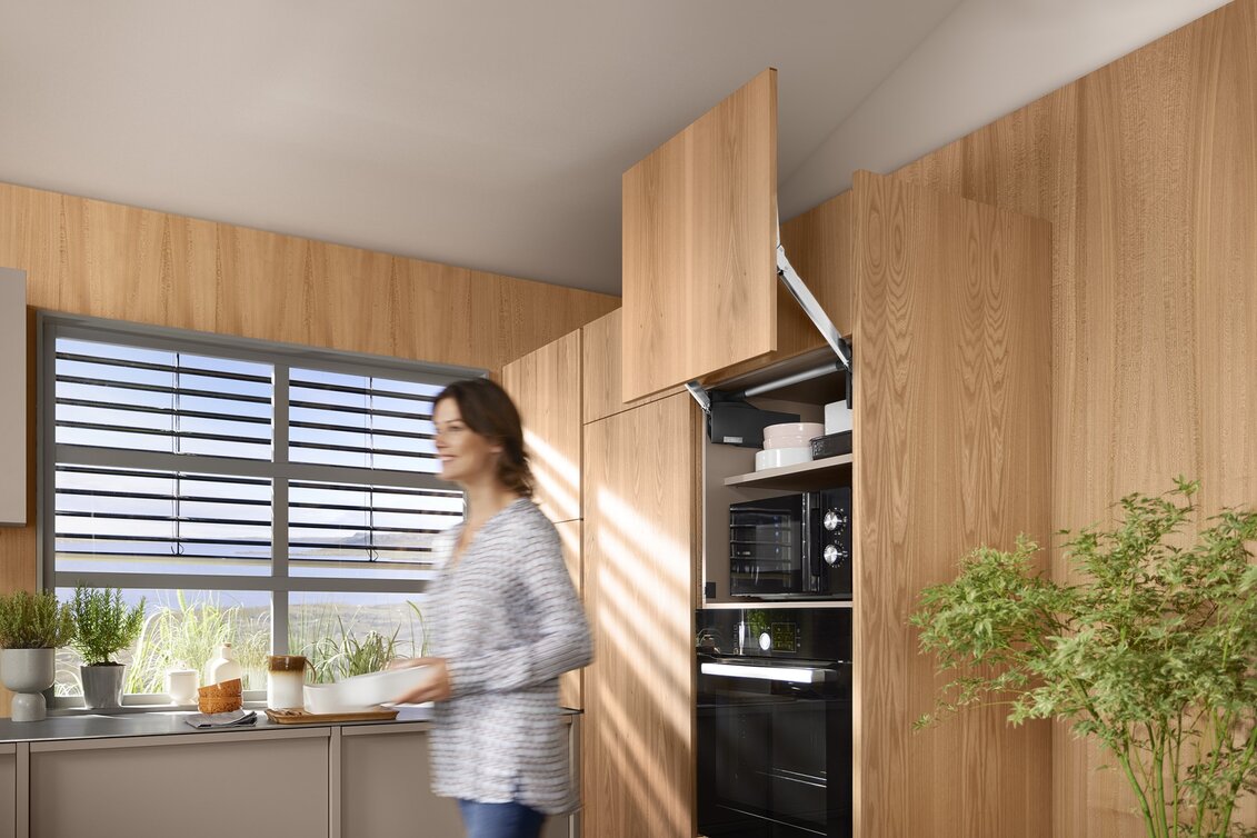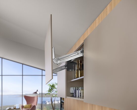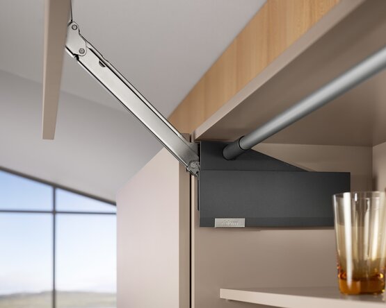 Pouze 2 typy zdvihacích mechanismů a 4 druhy ramen pokrývají celou škálu použití. Zdvihací mechanismy a čelní kování mohou být v systému AVENTOS HL top použity symetricky. Tím je dosaženo zvlášť efektivního skladování a manipulace.