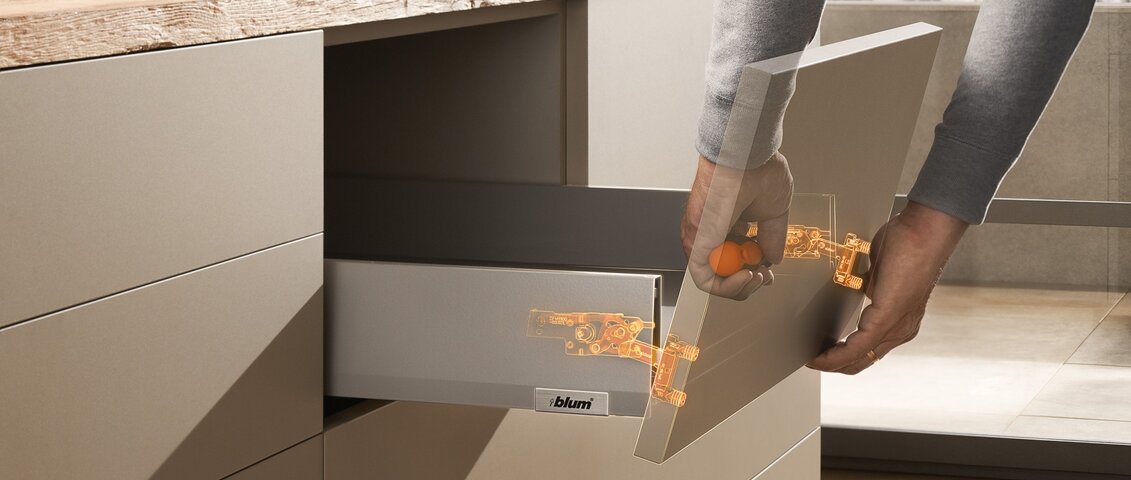 Systém MERIVOBOX je navržen tak, aby byl snadno použitelný a praktický. Díky jednoduchým a jasně označeným možnostem seřízení je montáž nábytku rychlá a bezproblémová.