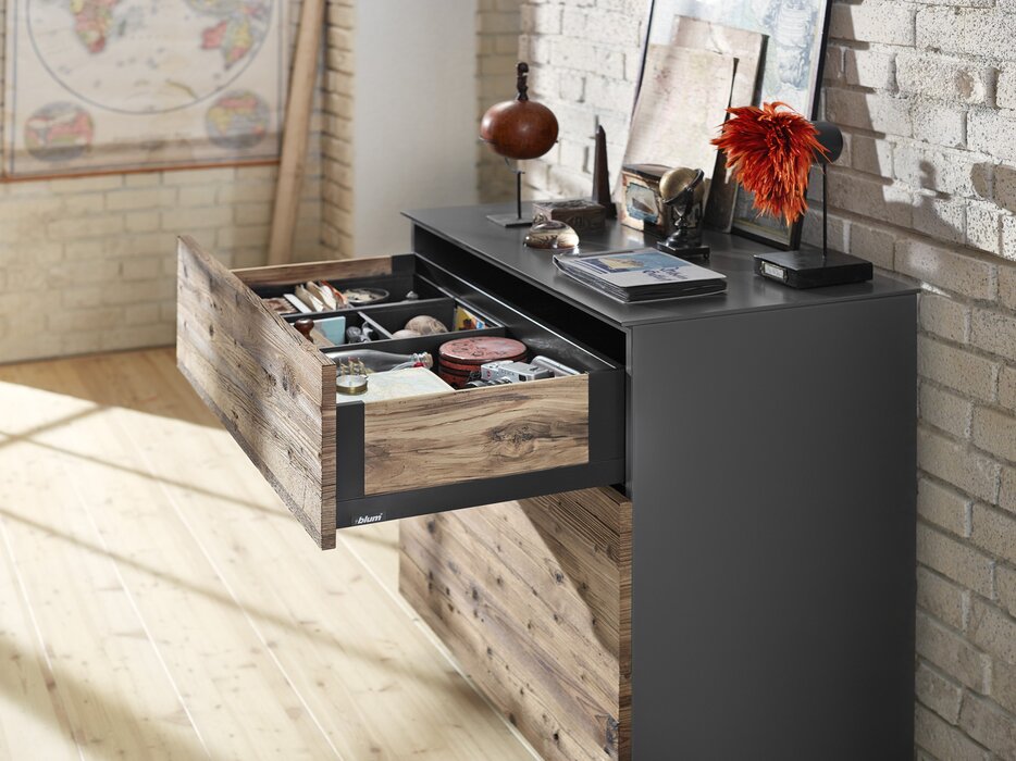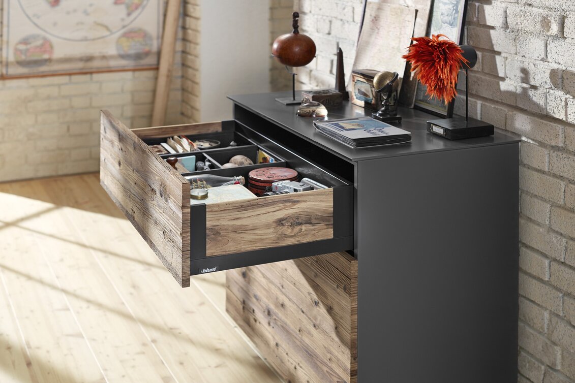LEGRABOX free nabízí neomezené možnosti pro zásuvné prvky. Můžete je doplnit sklem, dřevem, kůží, kamenem nebo jakýmkoli jiným materiálem, který vás zaujme.