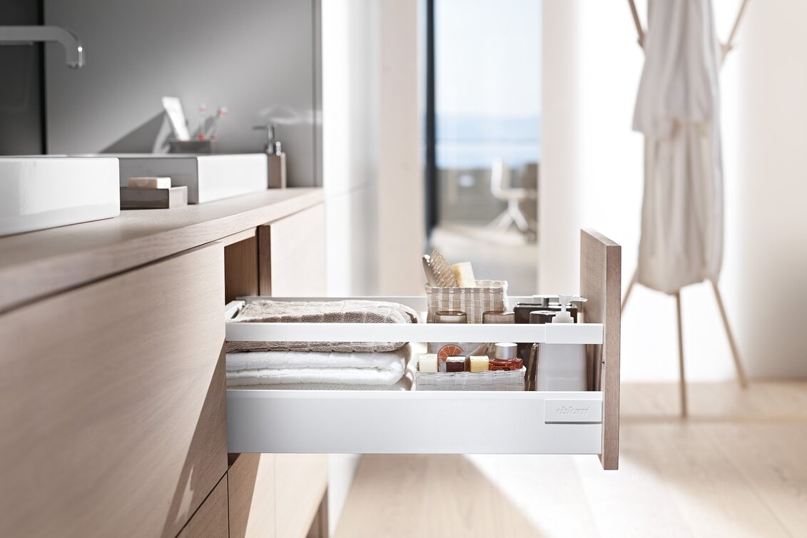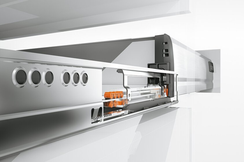 Již po desítky let slouží osvědčená korpusová lišta TANDEMBOX jako základ, a její plynulý a lehký chod neustále přesvědčuje. Vysoká kvalita pohybu je zajištěna plastovými válečky odolnými vůči opotřebení, což platí pro zatížení od 30 do 65 kg po celou dobu životnosti nábytku.