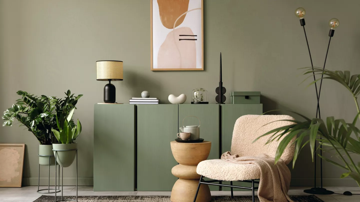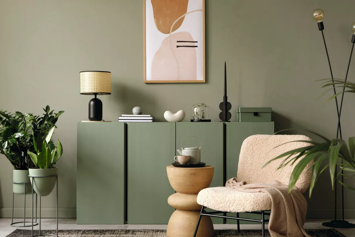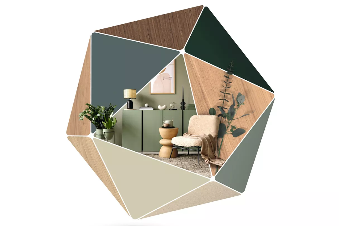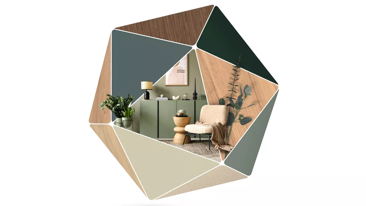 Zelená barva sehrává v designu důležitou roli, přičemž je vždy spojována s trendem udržitelnosti. Matná a tlumená zelená se často objevují v mnoha odstínech od světlé po tmavou. Společně ztělesňují zelenou rozmanitost přírody, která obzvlášť dobře ladí s přirozeně světlými variantami dřeva a hrubými textilními efekty.