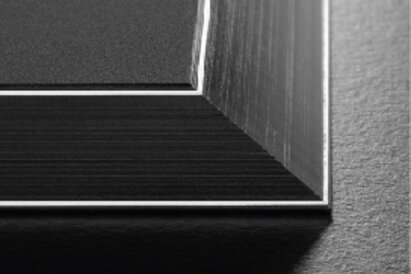 Speciální sytě černé jádro je zvýrazněno hliníkovou linií, která prochází viditelným okrajem kompaktní desky a je tak originálním designovým prvkem například pro hrany desek stolů.